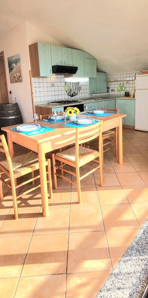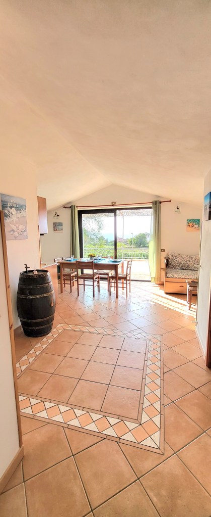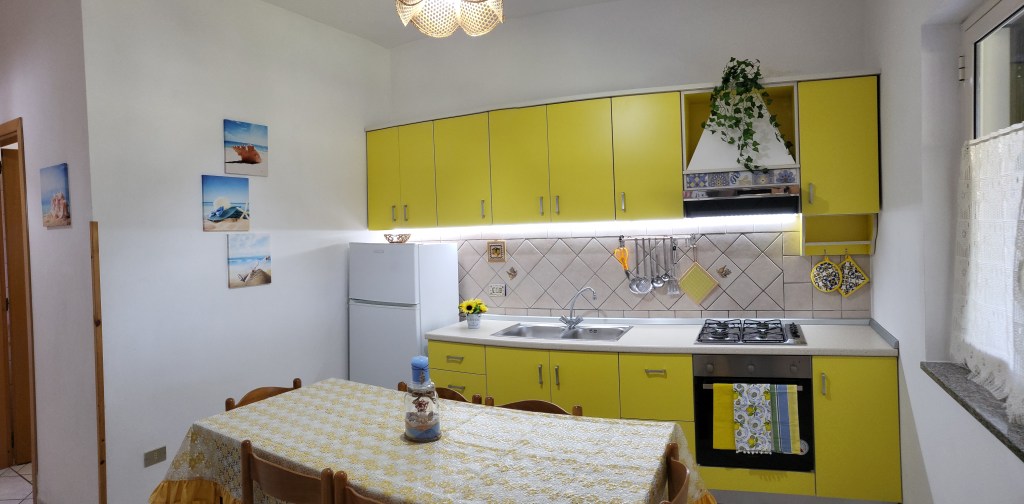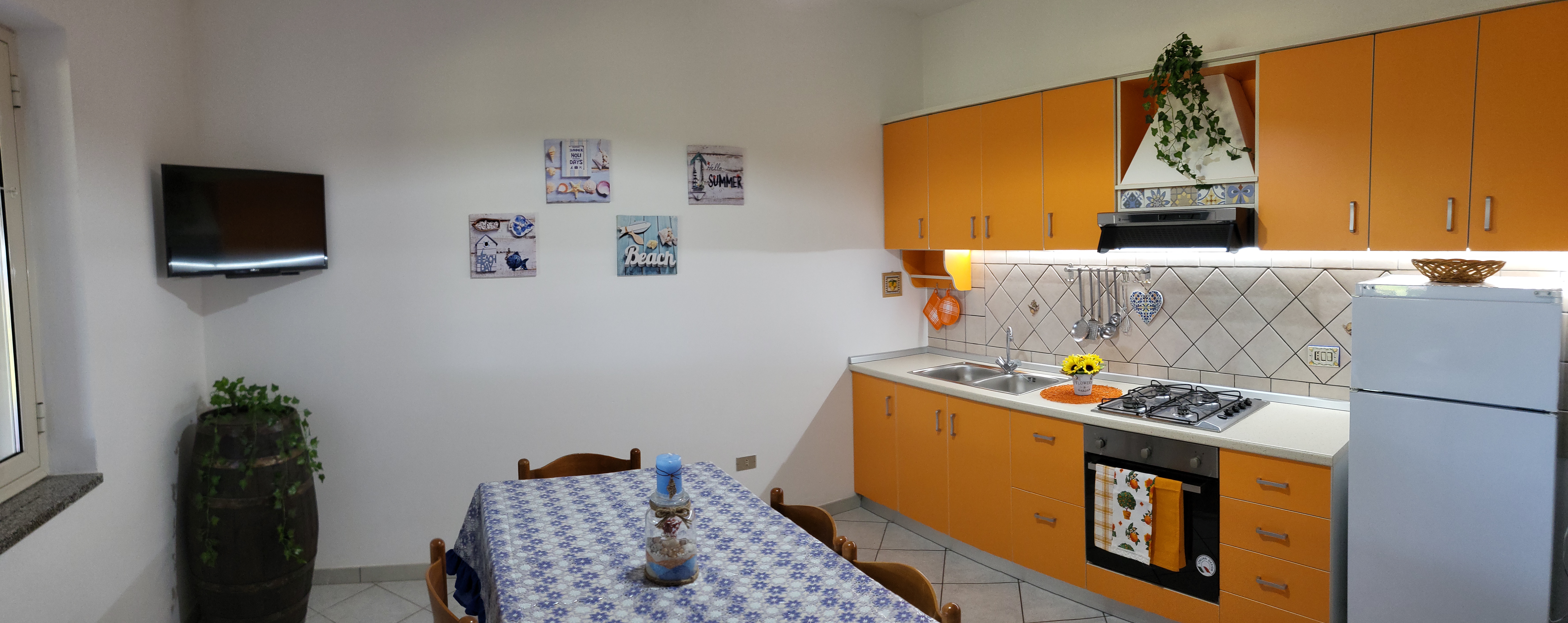 Situato al piano terra. L’appartamento è composto da 2 camere da letto con letto matrimoniale, cucina-soggiorno, bagno con doccia, ripostiglio e ampia veranda vista mare con barbecue privato. appartamento dotato di aria condizionata. Capienza max. 5 persone.