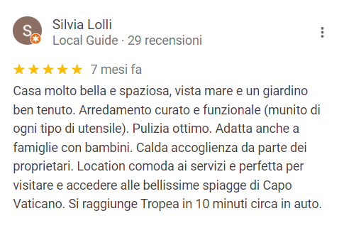 La villa, comoda e centrale a tutti i servizi, ideali e necessari per trascorrere le proprie vacanze nell’assoluto relax. Qui Regna l ‘accoglienza e l’ospitalità, frase oramai ricorrente nelle nostre recensioni.